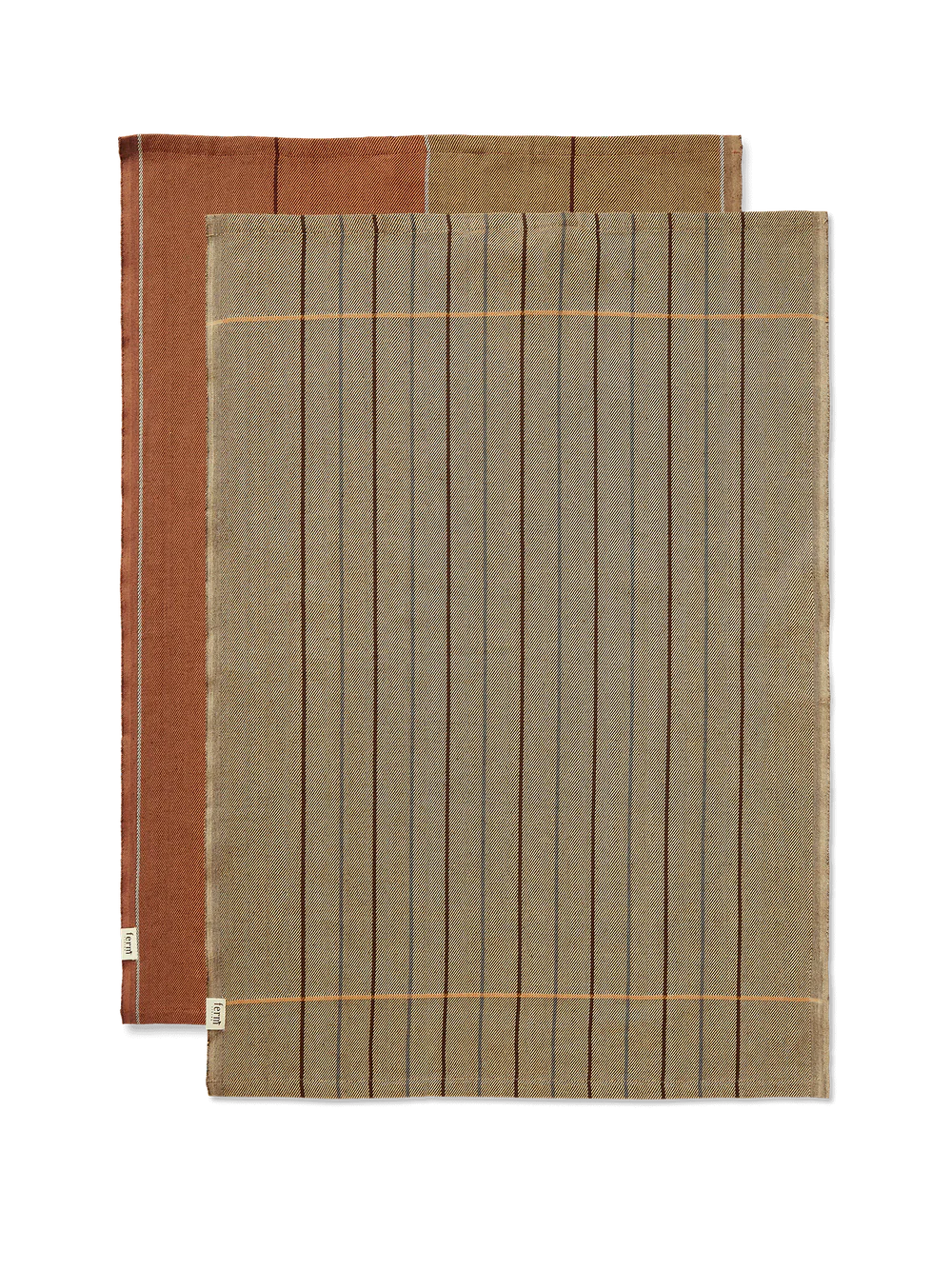 Ces torchons sont une interprétation contemporaine des textiles de cuisine traditionnels. Fabriqués en coton biologique certifié GOTS, les torchons sont conçus pour être pratiques et durables. Ces torchons allient la résistance et la texture du tissage sergé à un délicat motif à rayures. Vendu par lot de deux, chaque torchon est doté d’une bordure finement tissée qui lui confère un aspect à la fois artisanal et raffiné.