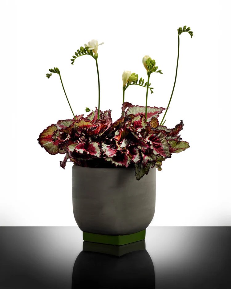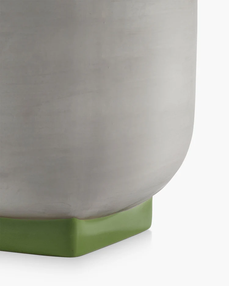Ce pot de fleurs gris et vert de la collection Rosamar par Kris Van Assche réinterprète une tradition personnelle de manière contemporaine. La forme épurée, le contraste subtil et le pied carré assurent un équilibre entre fonction et présence sculpturale.